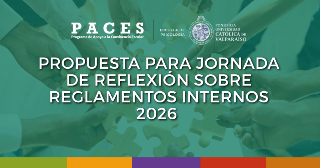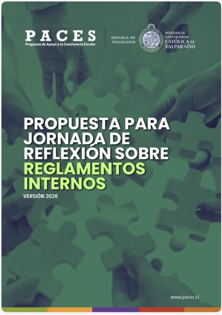 Esta propuesta, elaborada por el equipo PACES de la Escuela de Psicología de la Pontificia Universidad Católica de Valparaíso, busca fortalecer la reflexión, evaluación y socialización de los reglamentos internos junto a estudiantes, familias y equipos educativos.